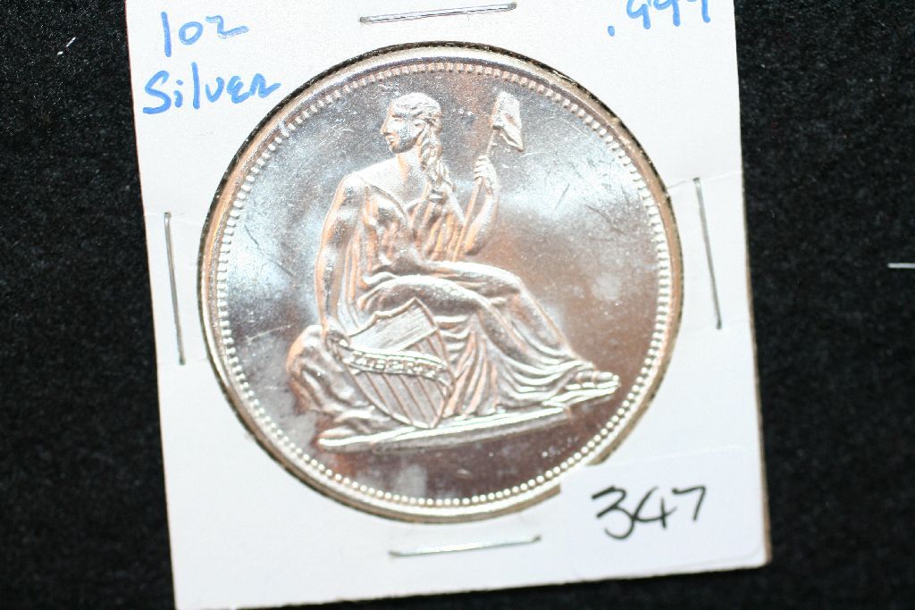 "Seated Liberty" Silver Round; .999 Fine Silver 1 Oz.
