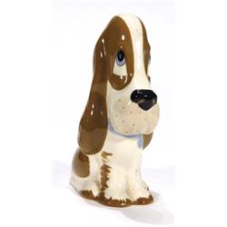 Seated Szeiler droopy dog, marks to base, 18cm high