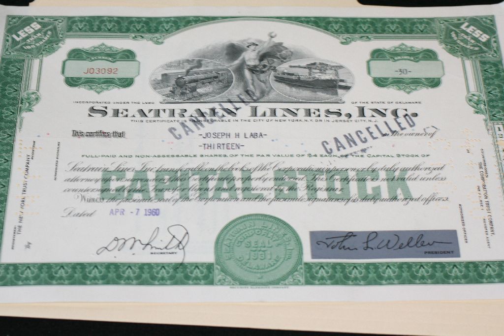 Seatrain Lines Inc. Stock Certificate Dated 1960