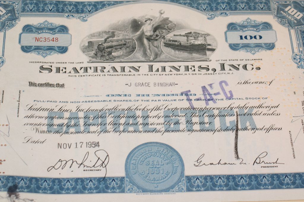 Seatrain Lines Inc. Stock Certificate dated 1954