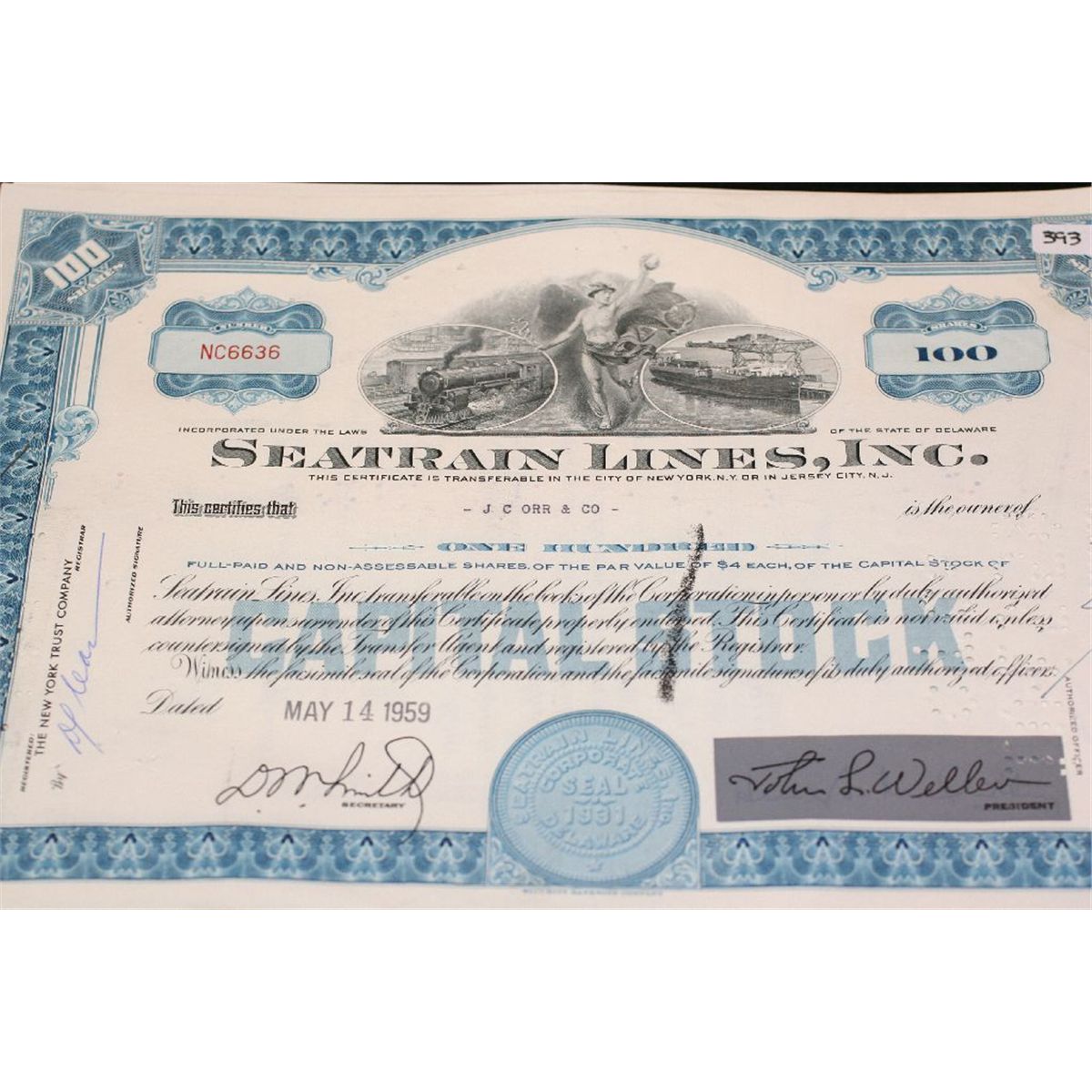 Seatrain Lines, Inc. Stock Certificate dated 1959