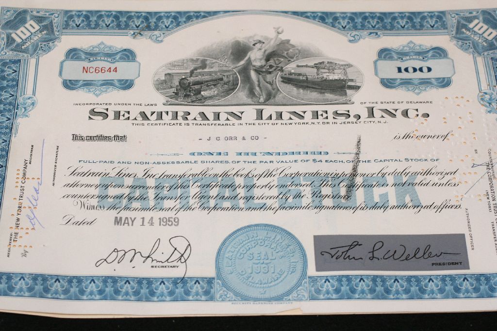 Seatrain Lines Inc. Stock Certificate dated 1959