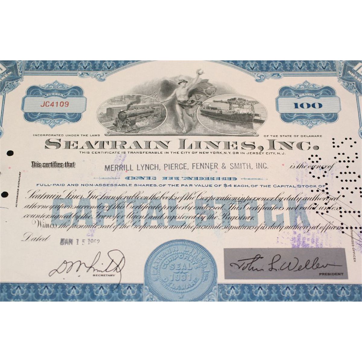 Seatrain Lines, Inc. Stock Certificate dated 1962