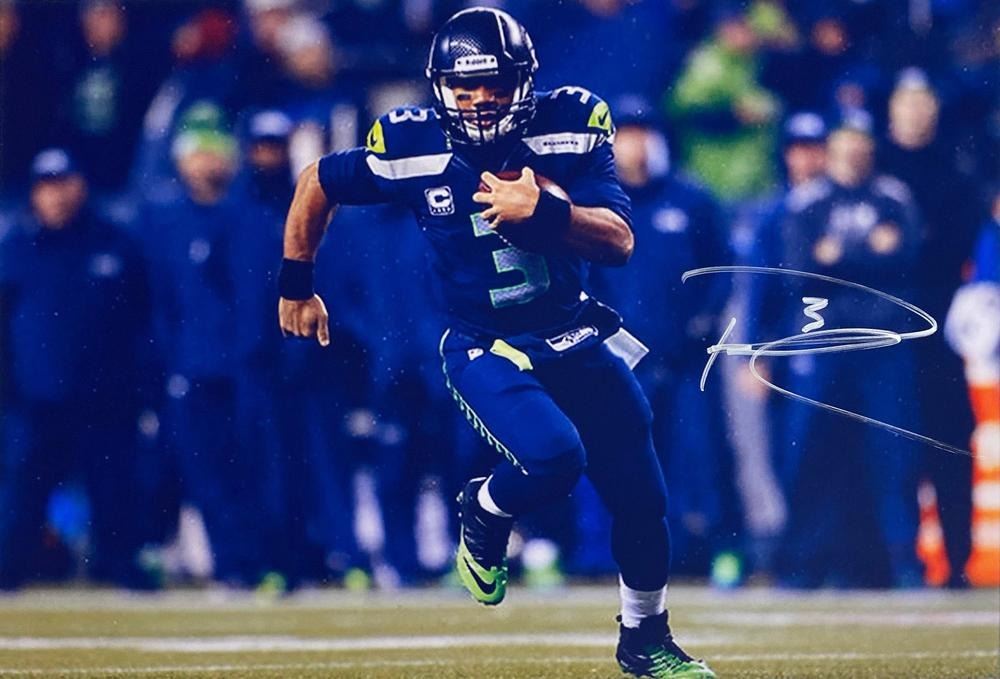 Seattle Seahawks facsimile signed photo autographed by Russell Wilson. 8x10 inches. This item is a reprint of an original autograph