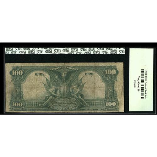 <B>Seattle, WA</B></I> - $100 1902 Date Back Fr. 692 <B>The Seattle NB</B></I> Ch. # (P)4229<BR>Only three banks in the state have $100 1902 Date Backs and/or Plain Backs recorded in the Kelly census. All three of those banks were located in Seattle and 31 $100s are spread out among them. <B>PCGS Very Good 10.</B></I>