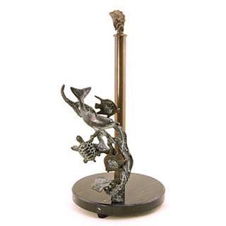 Seaworld Paper Towel Holder - 15" H - Brass On Marble Base