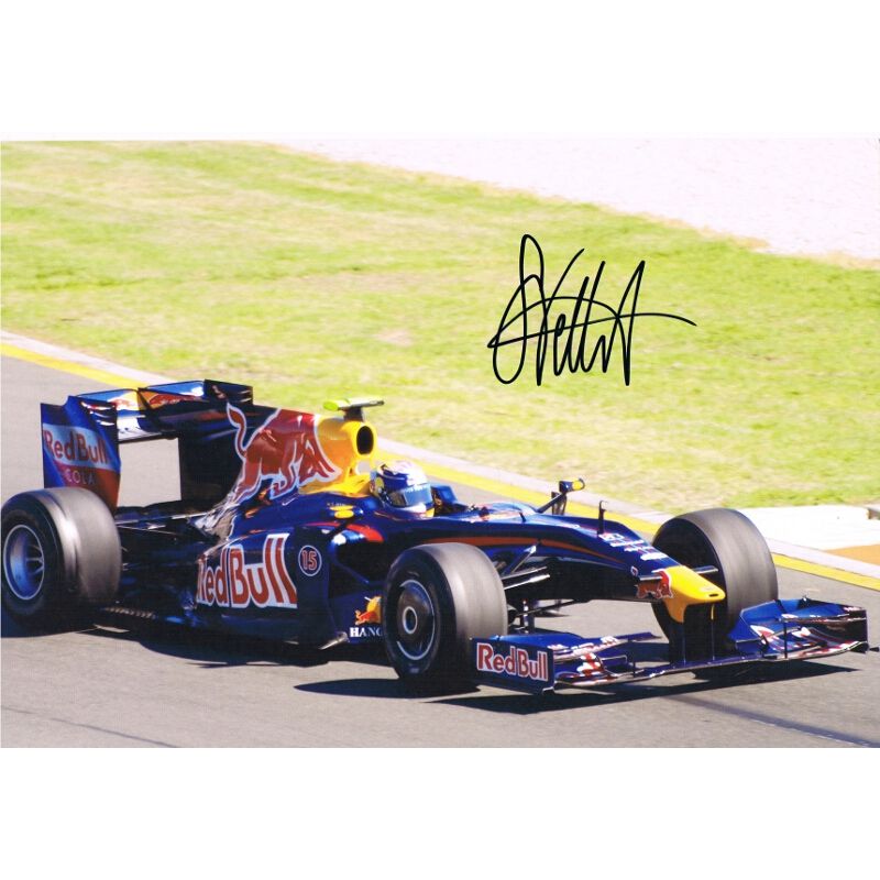 This glossy autographed photo of Vettel shows the driver in his Red Bull F1 car. The photograph measures 10" x 8". Vettel's signature is displayed clearly in black ink.