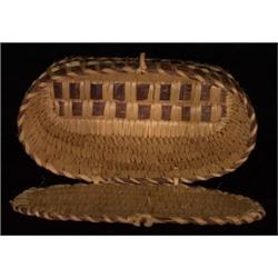 Sechelt Native Cedar Lidded Storage Basket with Rare Inside Imbrication 11" H. 5 3/4" W. Good Condition
