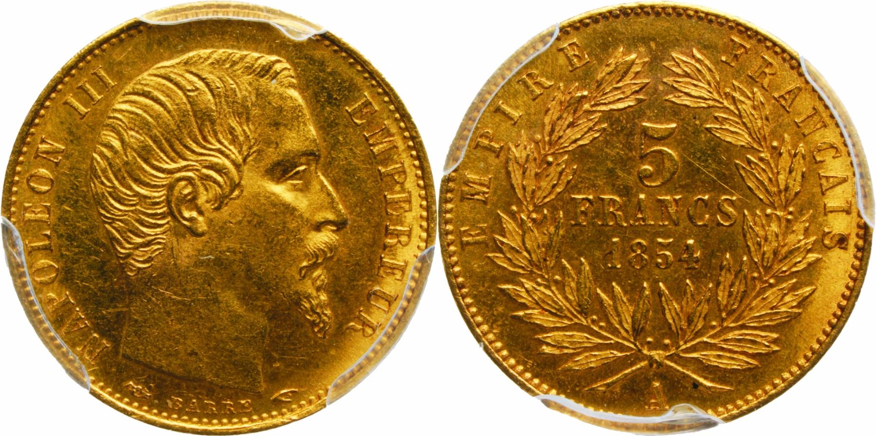 Second Empire 1852-1870 5 Francs, Paris, 1854 A, tranche lisse, petit module, AU 1.612 g. Ref : G. 1000, Fr.578