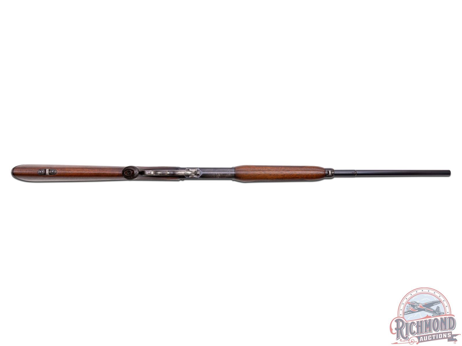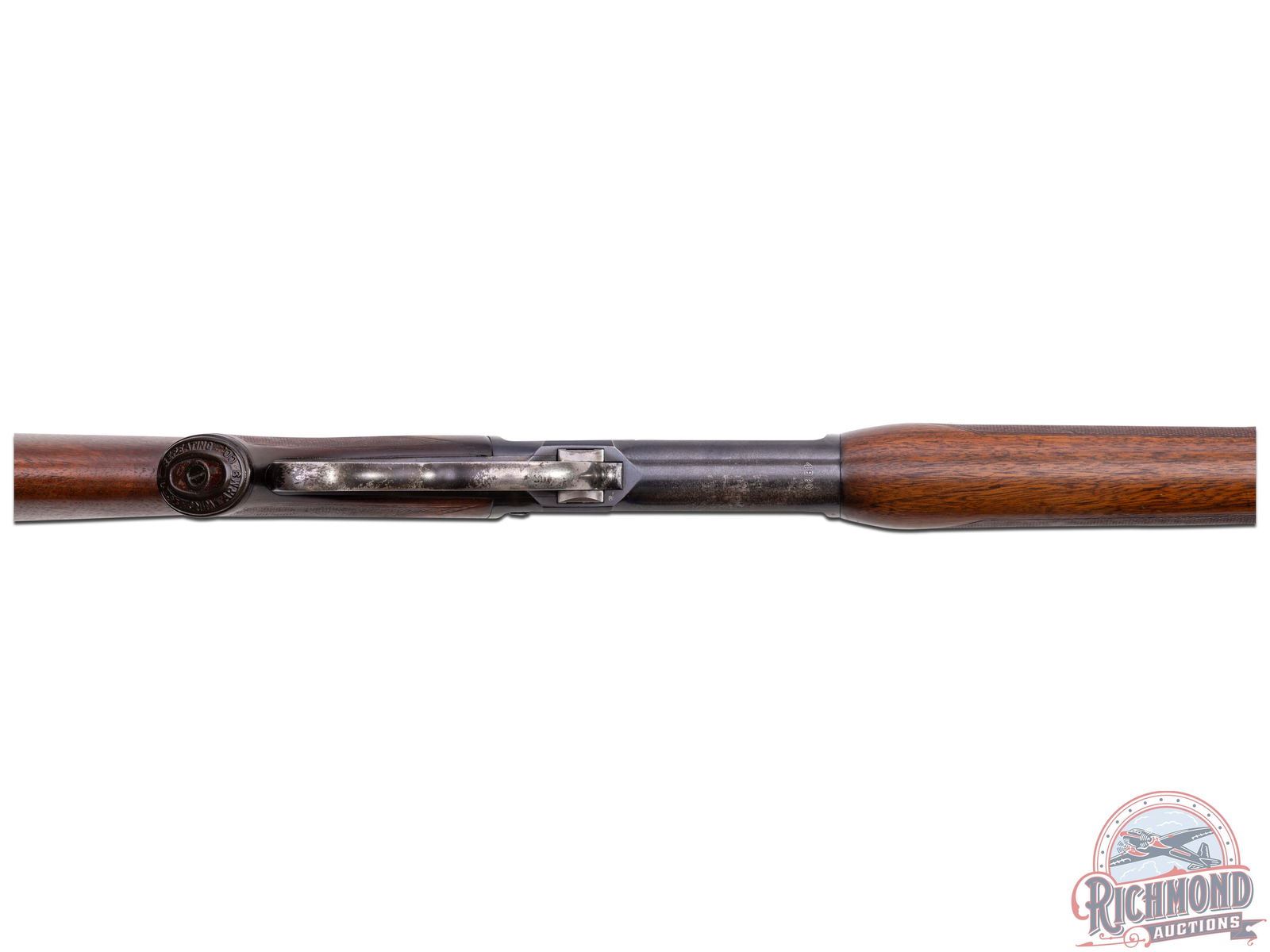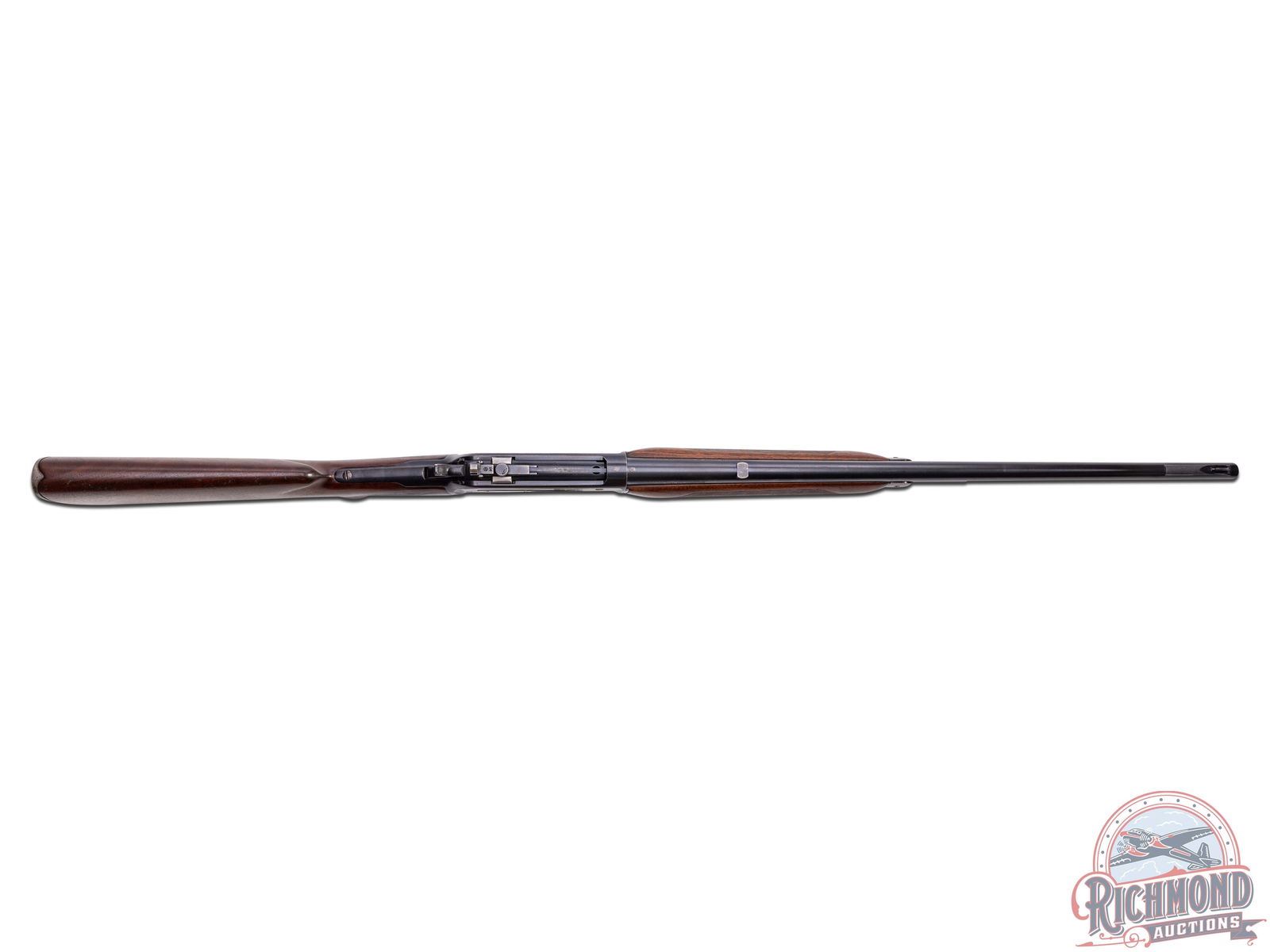 Made by Winchester Repeating Arms in 1936. 24" blued round Winchester Proof Steel barrel with hooded ramp front sight (missing hood), correctly plugged rear sight dovetail and action has desirable bolt peep sight. Barrel is marked with Winchester model and caliber on left and Winchester two line address on right with rifle in 348 caliber. Blued solid frame action with blued 2/3 magazine and plain trigger. Standard checkered walnut stocks with checkered steel butt plate and steel butt plate and sling swivel provisions (missing swivels). CALIBER: 348 W.C.F. S/N: 4890. FFL STATUS: Curio & Relic.