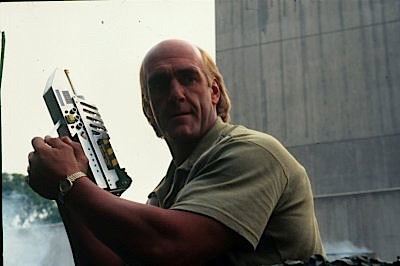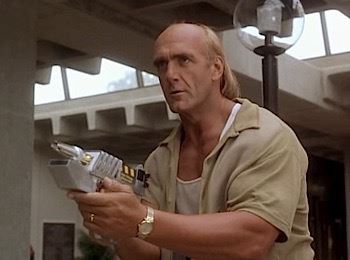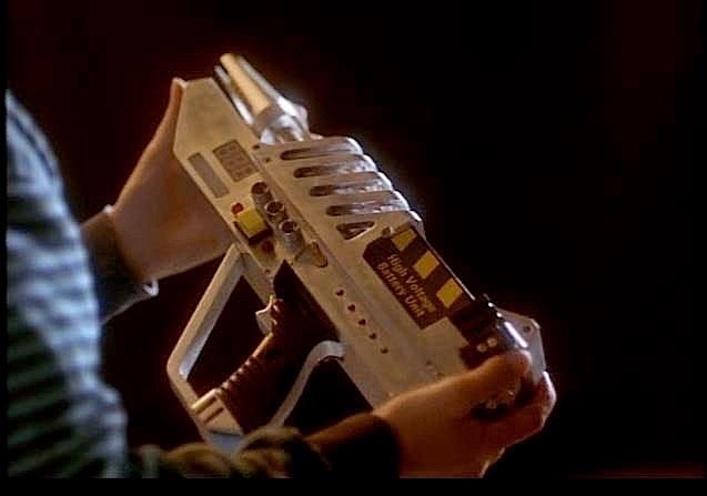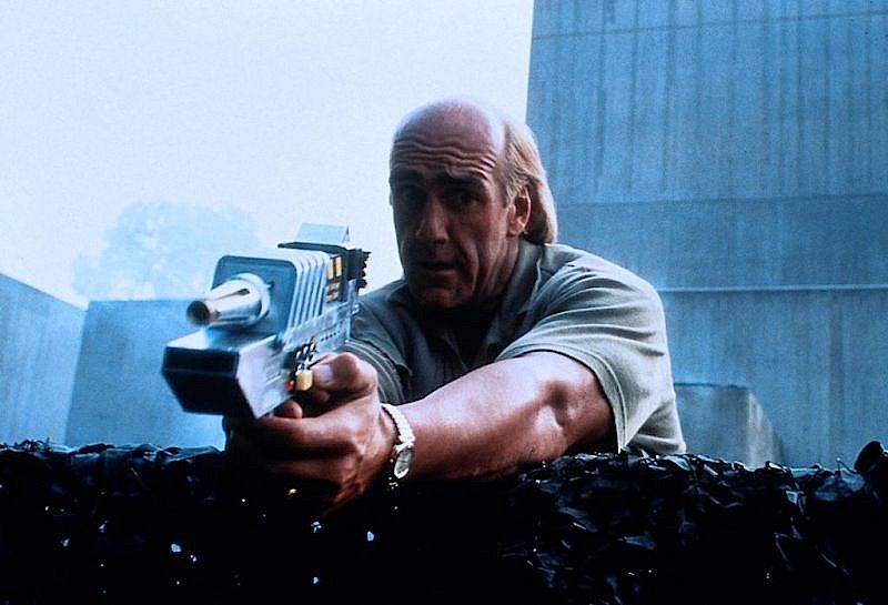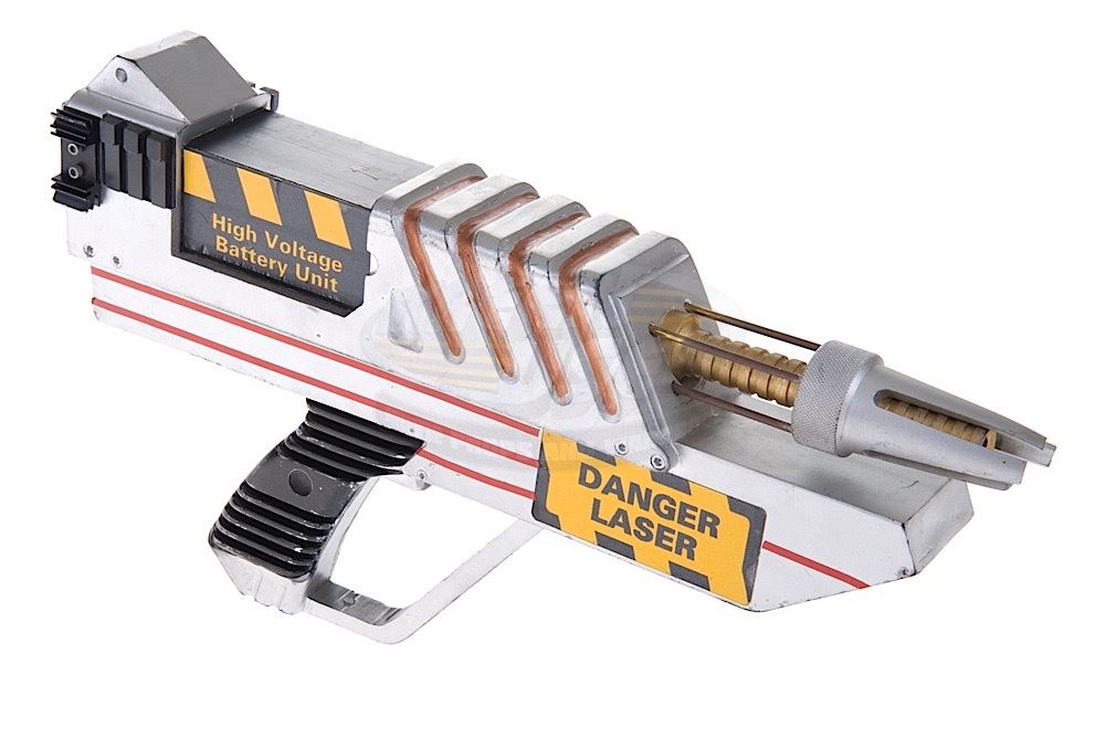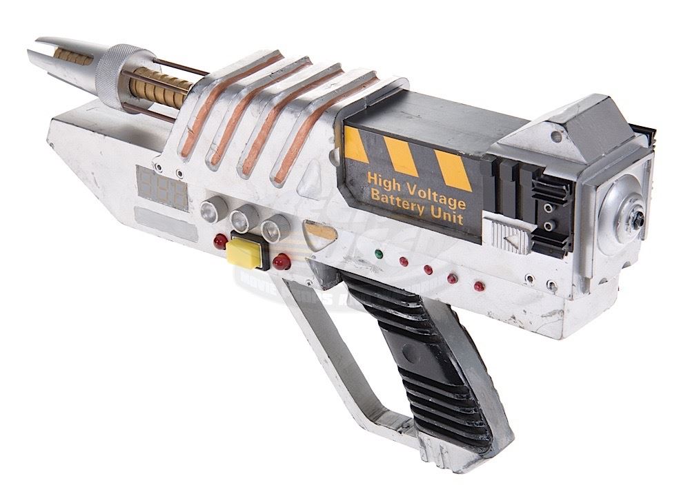 (Cabin Fever Entertainment, 1997) This prop laser pistol was custom-made by the production for use by Hulk Hogan as "Ray Chase" and other actors during filming. The pistol is made of resin and metal with applied graphics and plastic components. Minor wear from use is present, measures 15" x 8.5" x 2.5".