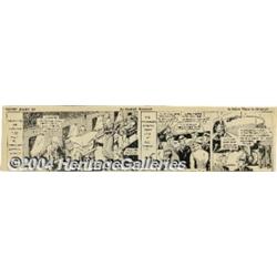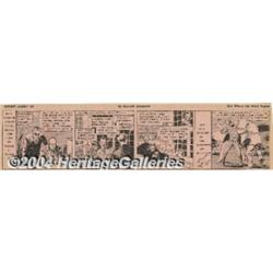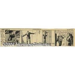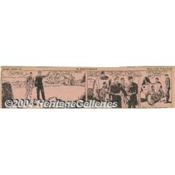 <B>Secret Agent X-9 Daily Comic Strips, Group of 136 (1934).</B></I> This classic espionage series by Alex Raymond is full of derring-do, beautiful women, and full-blooded action. Included in this lot are 136 strips from 1934, clipped from the <B>Wisconsin News</B></I>. The strip <I>Off Her High Horse</B></I> has significant tearing in the last panel and <I>Give 'er the Gun!</B></I> has one tape repair and a ragged torn top edge. Some of the other strips have minor edge wear, but most are in Excellent condition with minimal discoloration and aging apparent. A fun collection of this classic strip! <BR><BR><B>Important notice:</B> Heritage usually auctions material at the rate of 200-250 lots per hour. On some occasions eBay Live bid software or the Internet may not be able to keep up with the pace of the auction. We recommend placing a realistic absentee bid now as insurance to avoid disappointment. Occasionally the auctioneer may eliminate or reject an eBay Live bid, and the auctioneer may also reopen a lot after the close of the eBay live bidding (usually because we missed an audience bid), and may reject your bid even if it shows you as the winning bidder. By bidding via eBay Live, you agree that Heritage may award the lot to another bidder at its sole discretion under the circumstances described above or any other reasonable circumstances. Since eBay bids are not shown to us until we open the lot on the floor, we treat those bids just like floor bids. In most cases the floor responds before the eBay bid is presented to us, due to Internet lag time, so for consistency we have made it a policy that floor bids are always considered first over tie eBay live bids. Also please note that all Heritage lots purchased through eBay Live carry a 20% Buyer's Premium. Please make sure you read the Terms and Conditions before you bid.