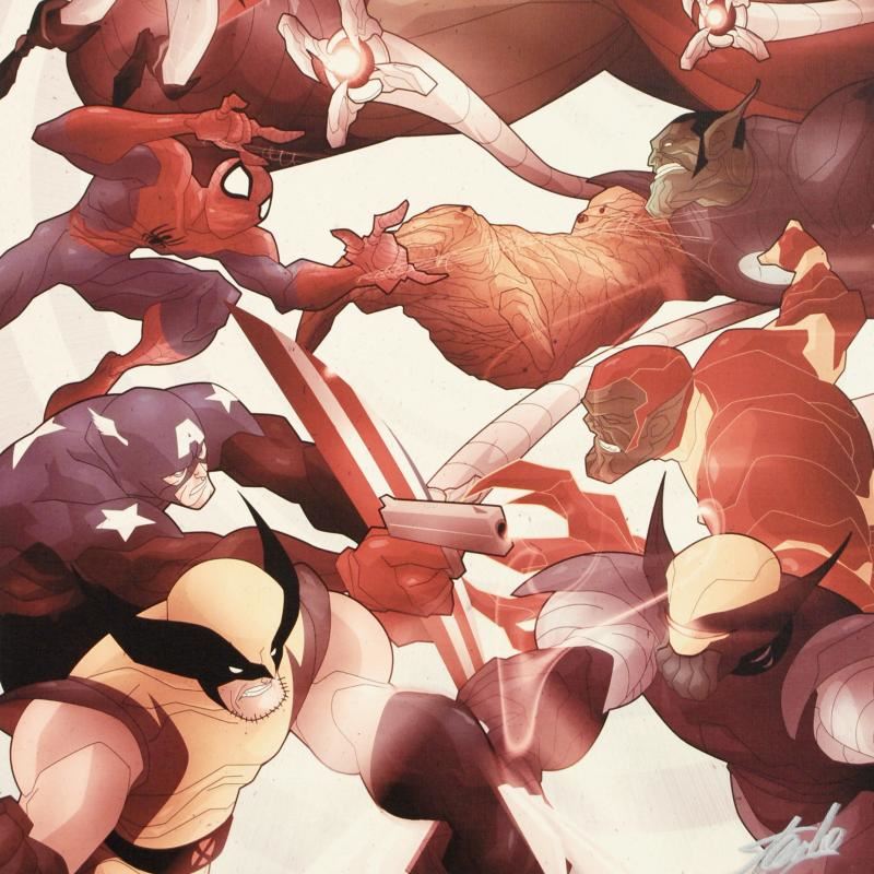 A piece of comic book history, this limited edition print, drawn by Juan Doe, depicts Thor, Spider-Man, Captain America and Wolverine. Juan Doe is known for the vintage, grainy aesthetics of his artwork. He has worked on such Marvel titles as Deadpool, The Avengers, The Fantastic Four and Legion of Monsters. "Secret Invasion: Front Line #5" is a limited edition giclee on canvas by Juan Doe presented by Marvel Comics, numbered and hand signed by the great Stan Lee! Includes Certificate of Authenticity! Measures approx. 18" x 27" (image).