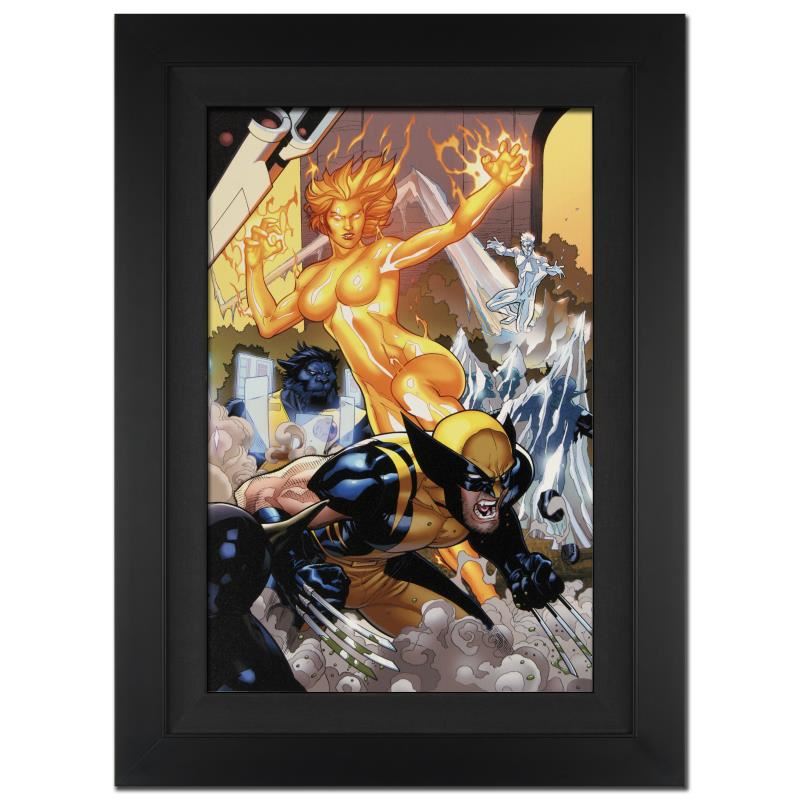 A piece of comic book history, this limited edition, from original art by Terry Dodson, depicts the classic characters Spider-Man, Wolverine, and Cyclops. Known primarily for his work on the X-Men franchise, Terry Dodson has also contributed to the Spider-Man franchise, particularly in the "Marvel Knights Spider-Man" mini series. "Secret Invasion: X-Men #4" is an extremely limited edition giclee on canvas by Terry Dodson presented by Marvel Comics, hand signed by the great Stan Lee and numbered out of only 10! This piece comes custom framed and ready to hang. Includes Certificate of Authenticity! Measure approx. 25" x 34" (with frame), 18" x 27" (image).