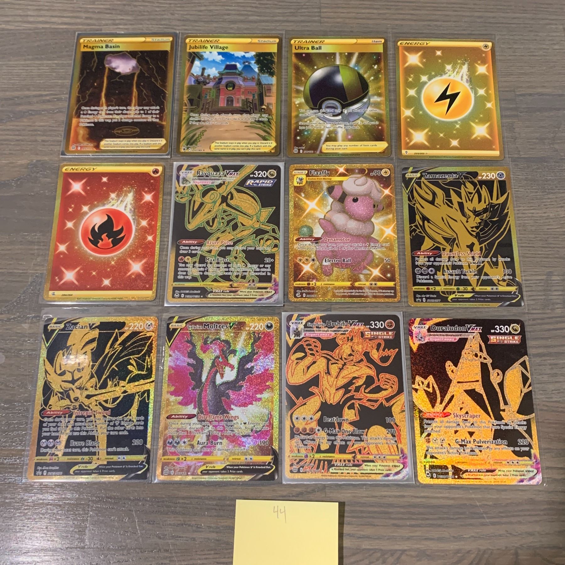 Lot of 12 Seceret Rare Gold Pokemon cards. We are a veteran owned company. Please look at the pictures carefully to determine what you believe the condition of collecitible is. We are currently accepting consignments. Email us a aeronhouse1994@gmail.com or visit our website, www.ahauctionhouse.com. We are currently seeking Star Wars related consignments.