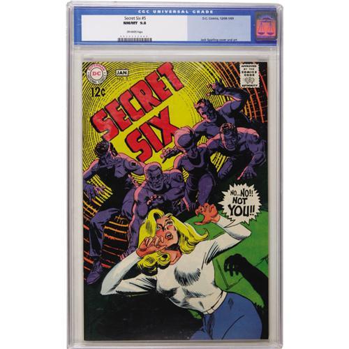 <B>Secret Six #5 (DC, 1968) CGC NM/MT 9.8 Off-white pages.</B></I> Jack Sparling cover and art. Overstreet 2006 NM- 9.2 value = $45. CGC census 10/06: 1 in 9.8, none higher.<BR><BR><b>Shipping:</b> Slabbed Comic (<a target="_blank" href="http://www.heritageauctions.com/common/shipping.php">view shipping information</a>)