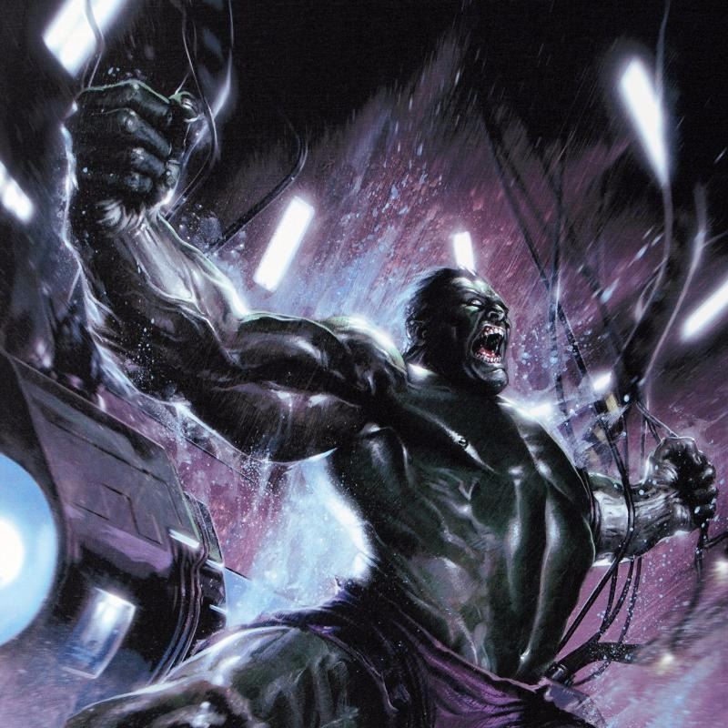 A piece of comic book history, this limited edition print, created by Gabriele Dell'Otto, depicts an enraged Hulk. In 1998 Dell'Otto started collaborating with the European division of Marvel Comics, producing covers, posters and lithographs for Italy, France and Germany. In 2002, his work was shown to the editor-in-chief of Marvel Comics, who entrusted to him with the art for the Secret War mini-series. "Secret War #1" is a limited edition giclee on canvas by Gabriel Dell'Otto presented by Marvel Comics! This piece comes gallery wrapped and ready to hang. Includes Certificate of Authenticity! Measures approx. 18" x 27" (image).