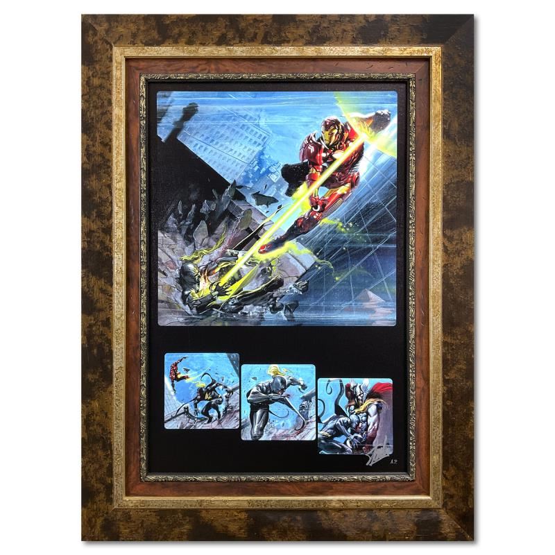 A piece of comic book history, this limited edition print, created by Gabriele Dell'Otto, depicts an enraged Hulk. In 1998 Dell'Otto started collaborating with the European division of Marvel Comics, producing covers, posters and lithographies for Italy, France and Germany. In 2002, his work was shown to the editor-in-chief of Marvel Comics, who entrusted to him with the art for the Secret War mini-series. "Secret War #1" is a limited edition giclee on canvas by Gabriel Dell'Otto presented by Marvel Comics and hand signed by Stan Lee (1922-2018). This piece comes framed. Includes Certificate of Authenticity. Measures approx. 26.5" x 35.5" (frame); 17.5" x 26.5" (image).