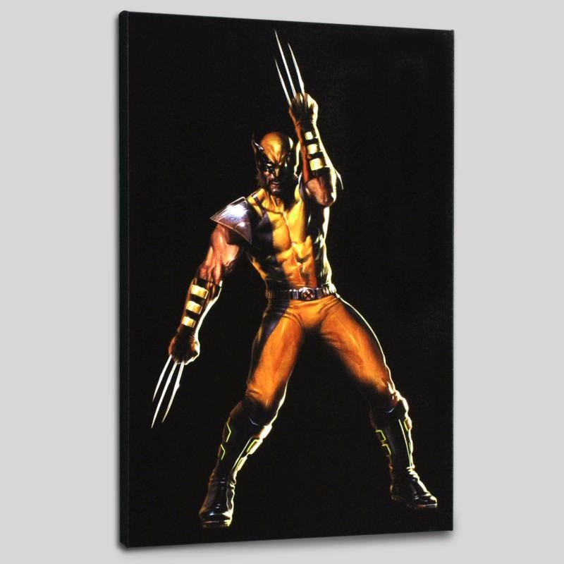 A piece of comic book history, this limited edition, from original art by Gabriele Dell'Otto, depicts heroic wild man Wolverine. In 1998 Dell'Otto started collaborating with the European division of Marvel Comics, producing covers, posters and lithographies for Italy, France and Germany. In 2002, his work was shown to the editor-in-chief of Marvel Comics, who entrusted to him with the art for the Secret War mini-series. "Secret War #2" is a limited edition numbered giclee on canvas by Gabriele Dell'Otto presented by Marvel Comics. This piece comes gallery wrapped. Includes Certificate of Authenticity! Measures approx. 18" x 27" (image); 1.5" (depth).