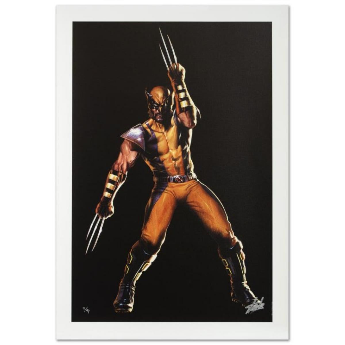 A piece of comic book history, this limited edition, from original art by Gabriele Dell'Otto, depicts the famous Wolverine. Italian-born illustrator Gabriele Dell'Otto began his career with Marvel by working for the European division and created well-known covers and posters. "Secret War #2" is a limited edition giclee on canvas by Gabriele Dell'Otto presented by Marvel Comics, numbered hand signed by the Great Stan Lee (1922-2018)! Includes Certificate of Authenticity! Measures approx. 18" x 27" (image).