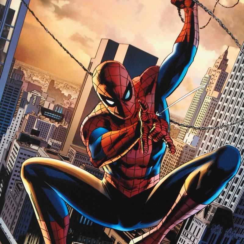 A piece of comic book history, this limited edition, from original art by Gabriele Dell'Otto, depicts an intense Spider-Man. In 1998 Dell'Otto started collaborating with the European division of Marvel Comics, producing covers, posters and lithographies for Italy, France and Germany. In 2002, his work was shown to the editor-in-chief of Marvel Comics, who entrusted to him with the art for the Secret War mini-series. "Secret War #4" is a limited edition numbered giclee on canvas by Gabriele Dell'Otto presented by Marvel Comics. This piece comes gallery wrapped. Includes Certificate of Authenticity! Measure approx. 18" x 27" (image).