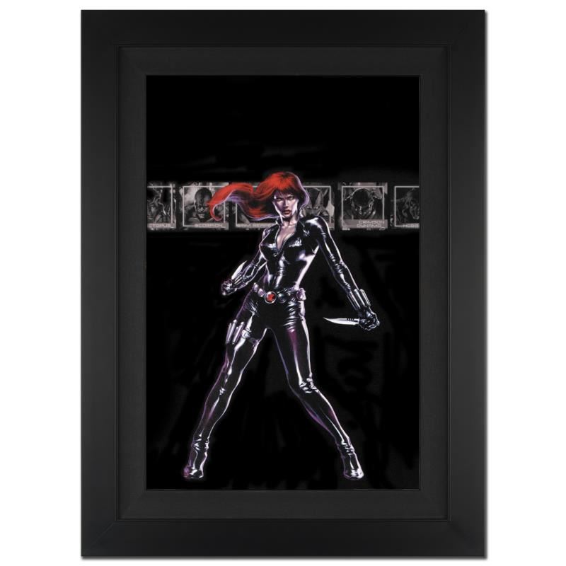 A piece of comic book history, this limited edition, from original art by Gabriele Dell'Otto, depicts an intense Black Widow. In 1998 Dell'Otto started collaborating with the European division of Marvel Comics, producing covers, posters and lithographies for Italy, France and Germany. In 2002, his work was shown to the editor-in-chief of Marvel Comics, who entrusted to him with the art for the Secret War mini-series. "Secret War #4" is an extremely limited edition giclee on canvas by Gabriele Dell'Otto presented by Marvel Comics, hand signed by the great Stan Lee and numbered out of only 4! This piece comes custom framed and ready to hang. Includes Certificate of Authenticity! Measures approx. 29" x 40" (with frame), 22" x 33" (image).