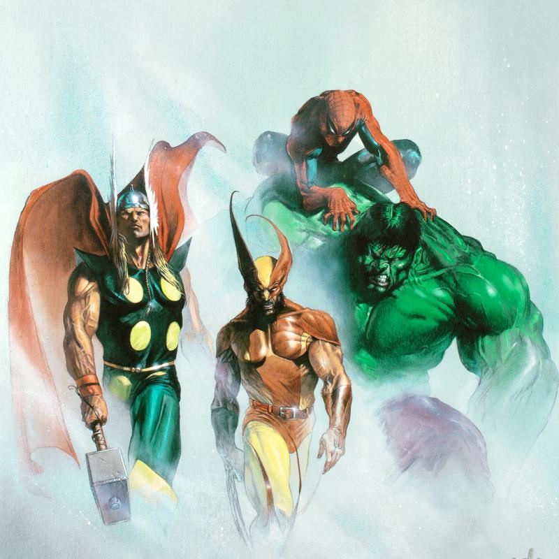 A piece of comic book history, this limited edition, from original art by Gabriele Dell'Otto, depicts Thor, Hulk Spider-Man and Wolverine. Italian-born illustrator Gabriele Dell'Otto began his career with Marvel by working for the European division and created well-known covers and posters. "Secret War VI #1" is a limited edition giclee on canvas by Gabriele Dell'Otto presented by Marvel Comics, numbered and hand signed by the great Stan Lee! Includes Certificate of Authenticity! Measures approx. 18" x 27" (image).