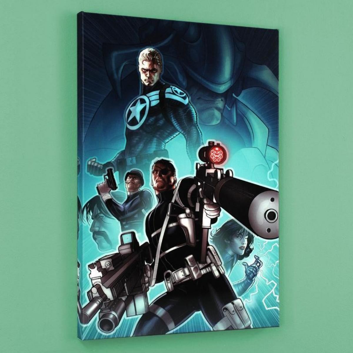 A piece of comic book history, this limited edition, from original art by Paul Renaud, depicts Nick Fury, Steve Rogers, and Dum Dum Dougan. Paul Renaud is a French comic book who has done notable work and been recognized through U.S. publishers including Basement Comics, Image, and Dynamite Entertainment. Paul's most recognized works are on Cavewoman and Red Sonja. Paul has been recognized as a highly capable cover artist, working on a plethora of covers for Dynamite and a handful of covers and even interior pages for Marvel Comics. "Secret Warriors #8" is a limited edition numbered giclee on stretched canvas by Paul Renaud presented by Marvel Comics. This piece comes gallery wrapped. Includes Certificate of Authenticity! Measures approx. 18" x 27" (image); 1.5" (depth).