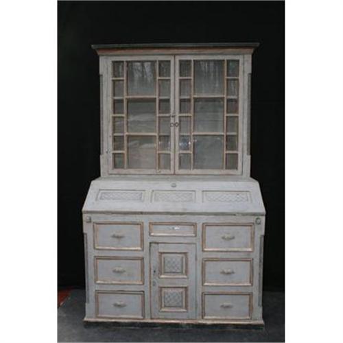 Russian Pine Secretaire, color grey blue,restored and painted in Holland.This Secretaire has working locks and keys.