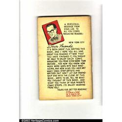 Secrets Behind The Comics #1 (Marvel, 1947) Condition: VG. Excelsior! Stan the Man spills his secrets in this interesting behind-the-scenes look at Marvel Comics. Published in 1947, this book is nonstop fun from beginning to end, and sheds some light on the mysteries of comics production. This VG copy is complete, with white pages. There are two siamese pages that were separated. You'll enjoy this book, and after reading it, you'll say "Make Mine Marvel." This book is not listed in the Overstreet Price Guide. Important notice: We expect to be auctioning lots at the rate of 200-250 per hour. Sometimes eBay Premier live bid software cannot keep up with that pace, so we strongly recommend that you place a realistic proxy bid now as insurance to avoid disappointment. Also please note that all Heritage/CAA lots purchased through eBay Premier carry a 20% Buyer's Premium.