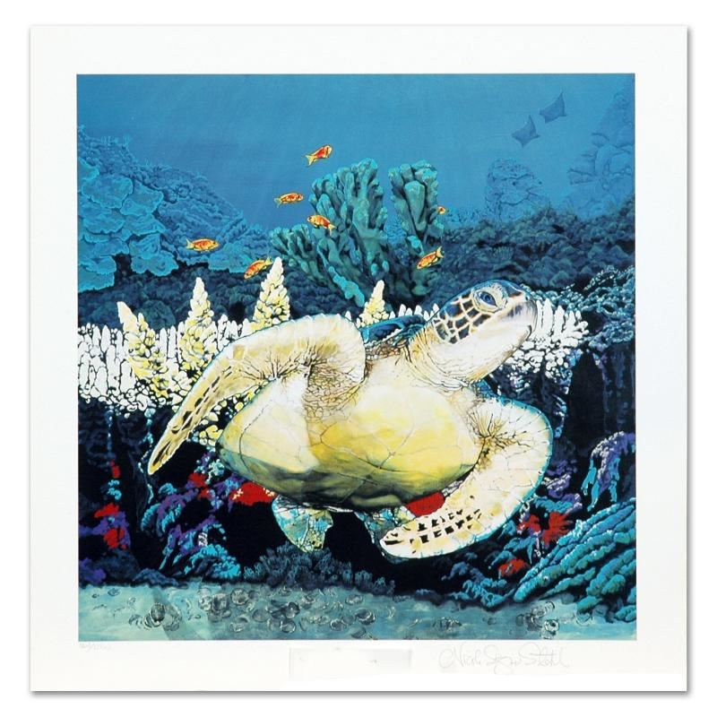 YOUR CHANCE TO OWN THE STUNNING OCEAN-LIFE ARTWORK OF NICOLE STAHL! Exquisitely details with a luminous quality, Stahl's work is a stunning addition to any collection! "Secrets at Silver Bank" is a seriolithograph on paper, numbered and hand-signed by the artist! Includes Certificate of Authenticity! Measures approx. 11.5" x 11.5" (image), 13.5" x 13.5" (with border).