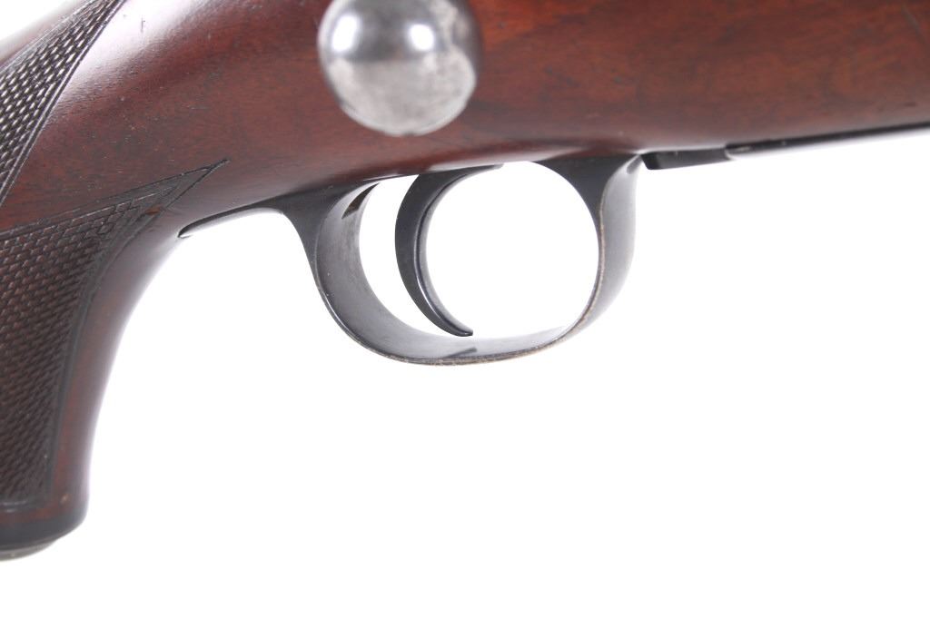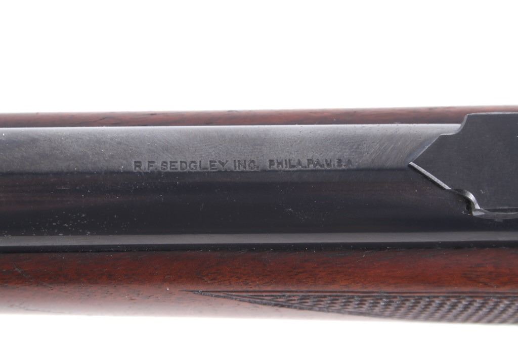 Featured in this lot we have a R.F. Sedgley Springfield bolt action hunting rifle chambered in .30-06 caliber. The rifle displays a 24" long barrel, set front sight and adjustable rear sight, and walnut stock. The piece shows scope mounting holes on the top of the receiver and internal magazine. The left side of the barrel is marked "CAL 30 06 S" with the top marked "R.F. Sedgley. Inc. Phila P.A. U.S.A.". The rifle shows good condition overall with some light wear and use, showing a tight action and good trigger. Serial Number: 1572. This is a modern firearm and requires a FFL transfer or NICS background check.