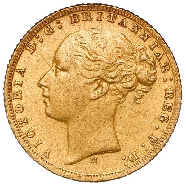 Melbourne, Australia (under Great Britain), gold sovereign, Victoria (young head), 1872-M, horse rev348 - Melbourne, Australia (under Great Britain), gold sovereign, Victoria (young head), 1872-M, horse rev
