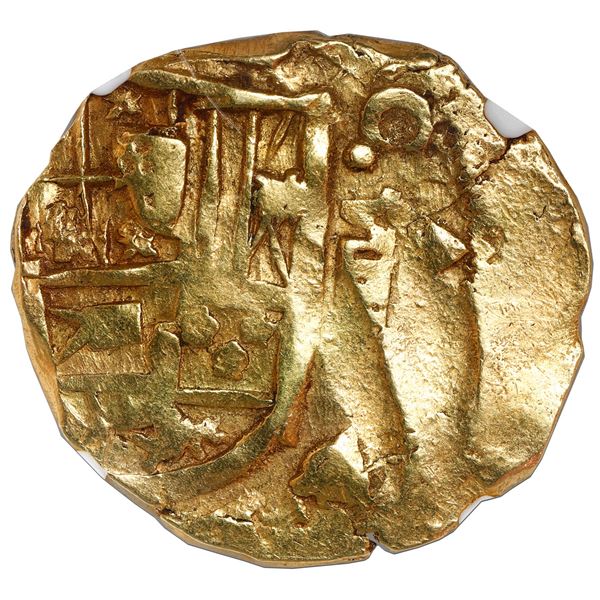 Seville, Spain, gold cob 8 escudos, Charles II, assayer not visible, NGC XF 45. Cal-Type 181. 26.80 grams. Broad flan, very crude strike with 50% off-