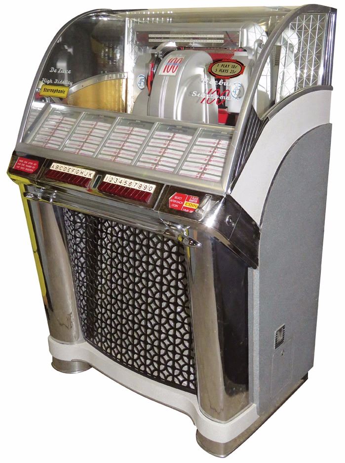 Seeburg 100 Select-o-Matic Jukebox. Deluxe High Fidelity - Stereophonic. 25 cent play. Excellent working condition. 25 cent play. 35 X 54 X 26 inches.