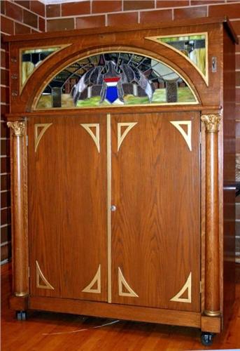 Seeburg Model KT Nickelodeon beautifully restored inside and out. Front glass features an eagle with spread wings.. Oak case. Instruments include xylophone, castanets, and cymbals. Sound is superb. Professionally done.