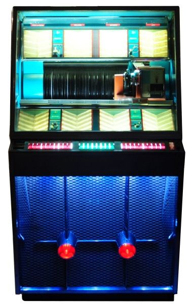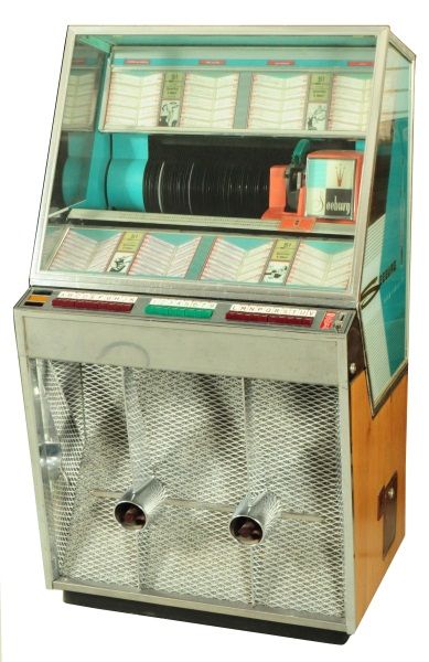 Full of great 1950s 45 RPM records With Keys. In good working condition. 30-1/2" W x 27" D x 55" H.