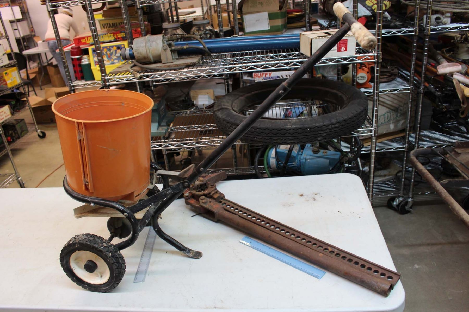 Seed or Fertilizer Spreader & A Jack