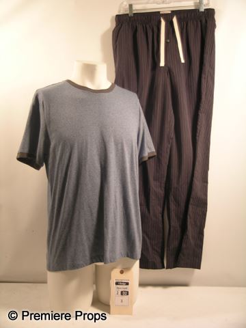 Dodge (Steve Carell) screen worn, hero, light blue short sleeve 'Jack Spade' t-shirt, (size L) and dark green striped 'Merona' pajama pants. (Size M) Includes wardrobe tag!