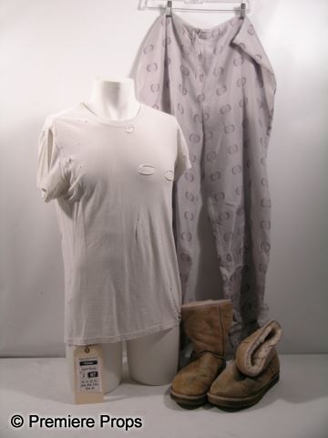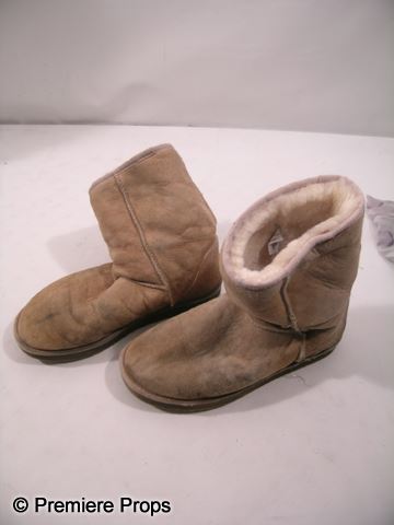 Owen (Adam Brody) screen worn, hero, white with holes 'Calvin Klein' t-shirt, (size S) light grey with circle design 'Kristen M. Burke' pj bottoms, and tan calf length 'Uggs' boots. (size 9) Includes wardrobe tag!