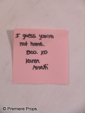 Karen (Melanie Lynskey) screen used, hero, 'I Guess Your Not Home. Boo. XO. Karen.' sticky note. Condition may vary.