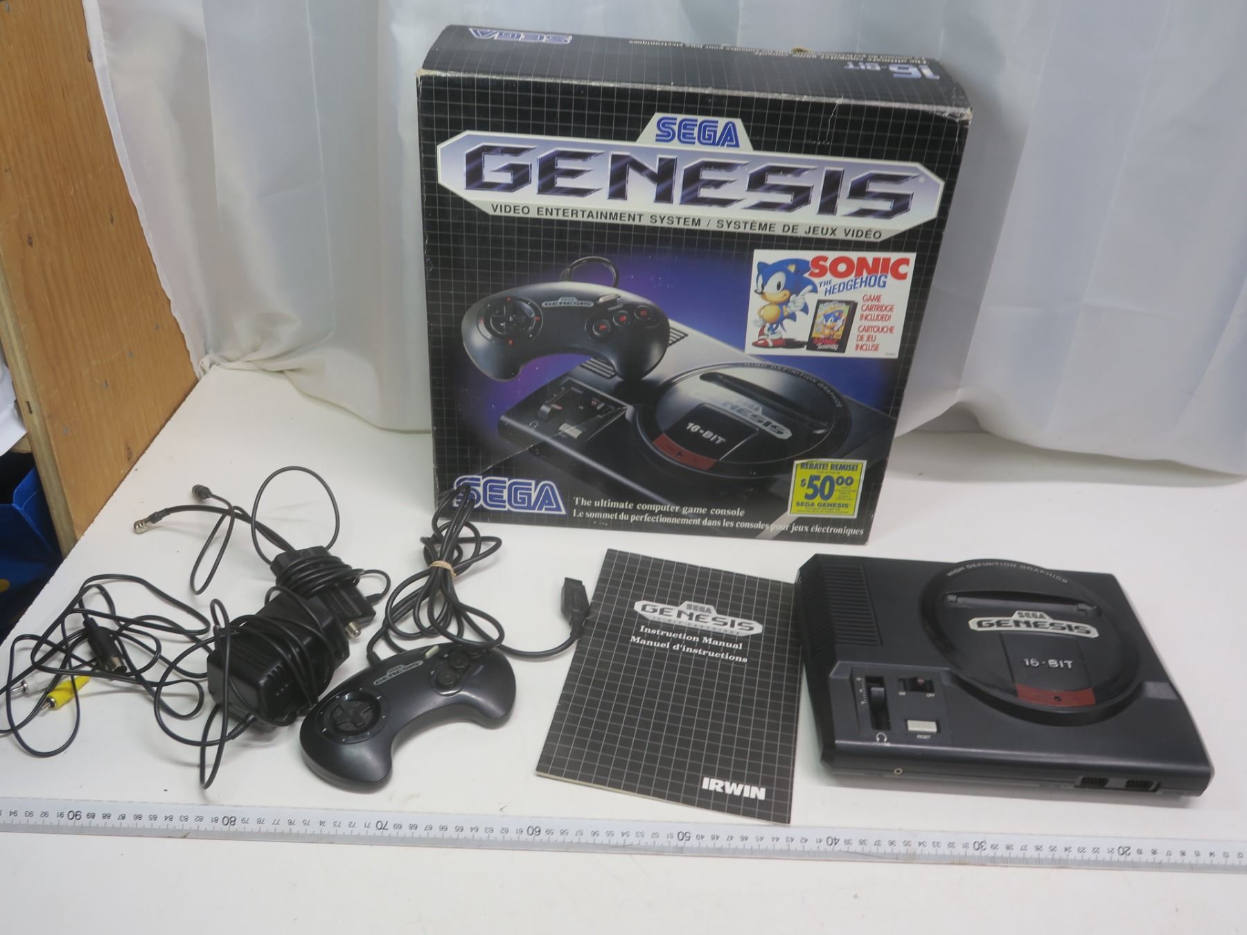 Sega Genesis system, hook ups, controller and instructions in original box - working
