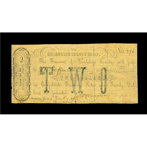 Seguin, TX- Guadalupe County $2 July 5, 1862 Medlar 10V
