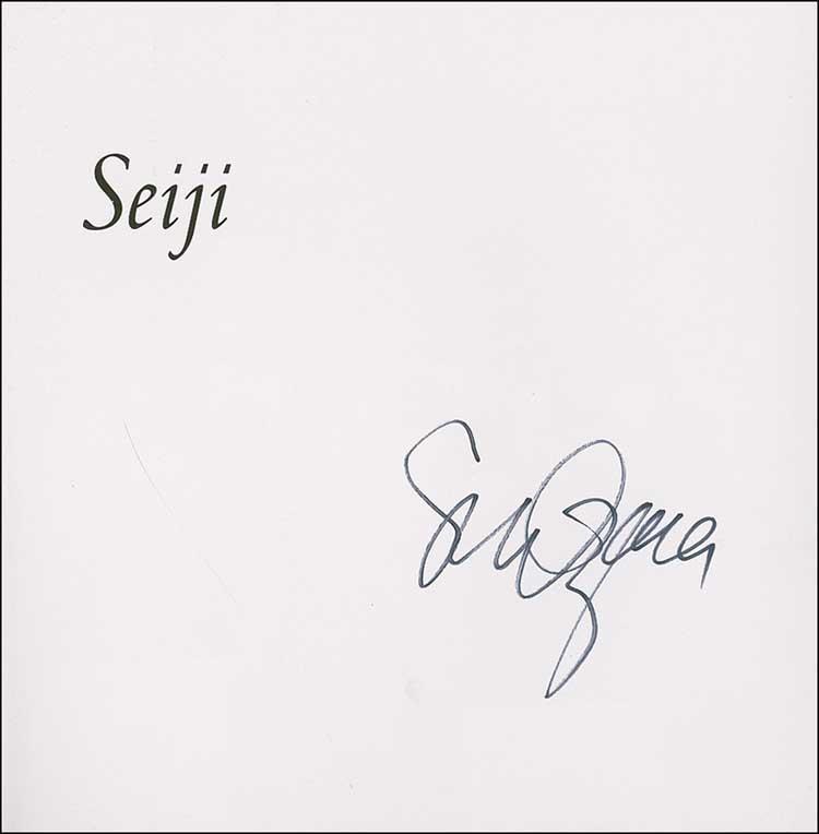 Conductor best known for his work as music director of the Boston Symphony Orchestra and the Vienna State Opera. Signed book: Seiji. First edition, first printing. Boston: Houghton Mifflin, 1998. Hardcover with dustjacket, 10 x 10.25, 114 pages. Signed in black felt tip on the second free end page. Consignor notes signature was acquired in 2008 before a Boston Symphony Orchestra event. In fine condition, with some scattered light wear to dustjacket. RRAuction COA.