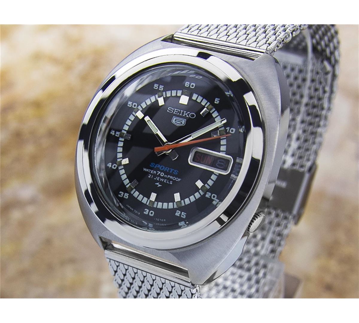 Seiko 7019 Day Date Stainless Steel Automatic Watch. Brand: SEIKO. Model: 7019. Movement: Automatic. Case Material: Stainless Steel. Crystal: MINERAL GLASS. Case Size: 44X38. Band: ORIGINAL Stainless Steel BRACELET.