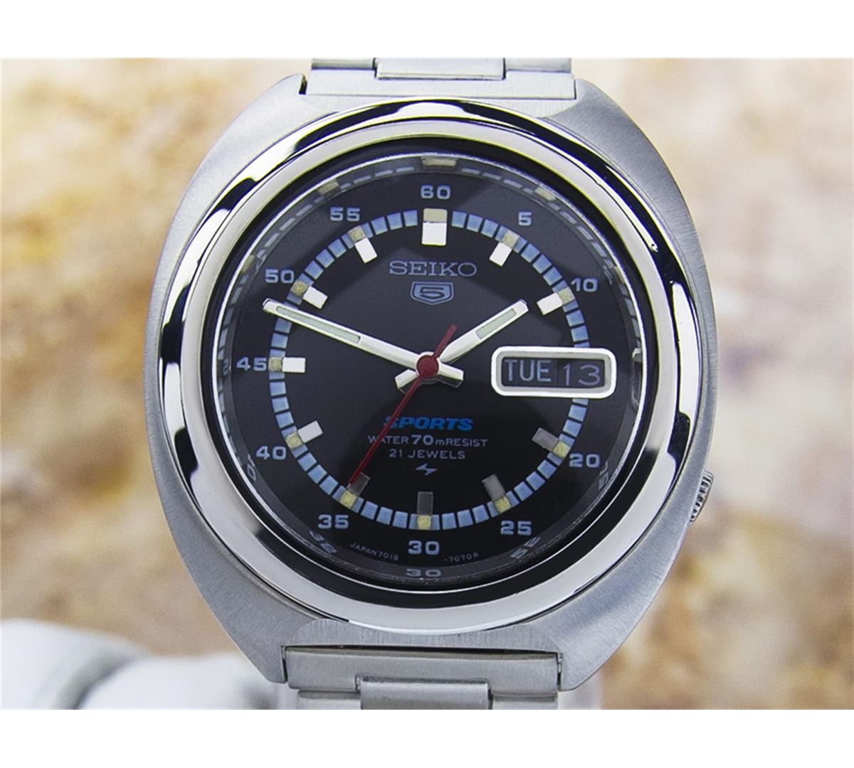 Seiko 7019 Day Date Stainless Steel Automatic Watch. Brand: SEIKO. Model: 7019. Movement: Automatic. Case Material: Stainless Steel. Crystal: MINERAL GLASS. Case Size: 44X38. Band: ORIGINAL Stainless Steel BRACELET.