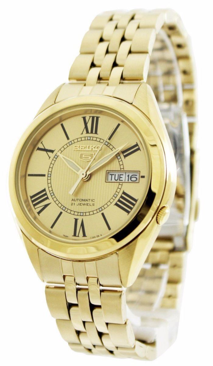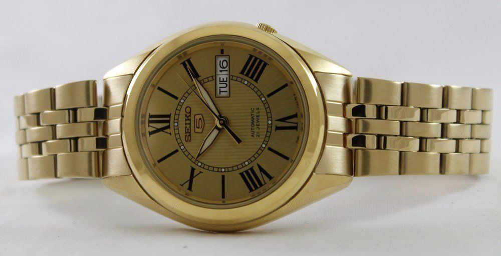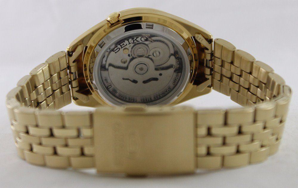Gold Tone Stainless Steel Case; Gold Tone Stainless Steel Bracelet; Automatic Movement ; Caliber: 7S2621 Jewels Hardlex Crystal Gold Tone DialBlack Roman Numerals Luminous Hands And Markers Day And Date Display See Through Case; Back Folding Clasp With Push Buttons Release; 30M Water ResistanceApproximate Case Diameter: 37mm; Approximate Case Thickness: 11mm;Guaranteed 100% Genuine And Brand New Watch