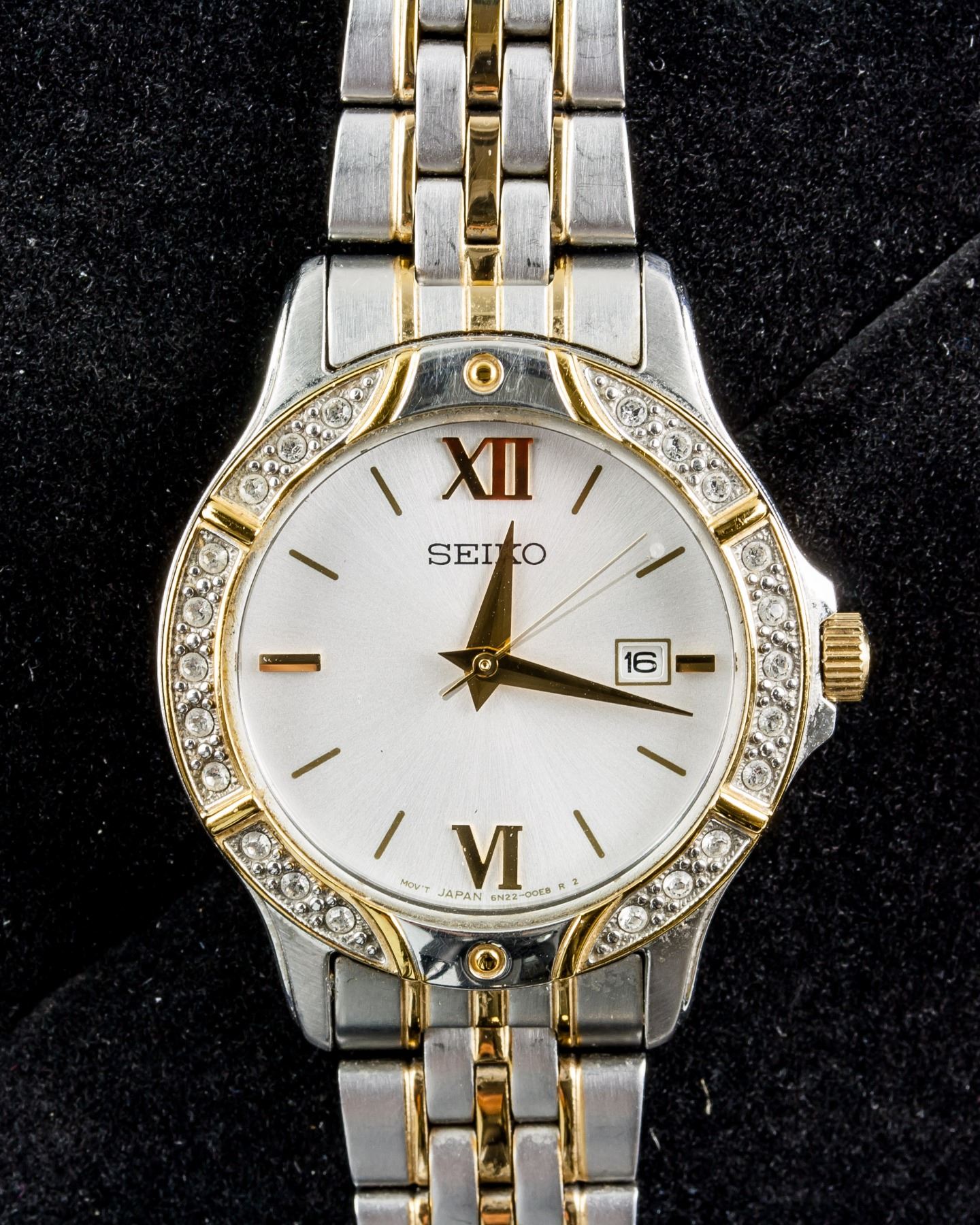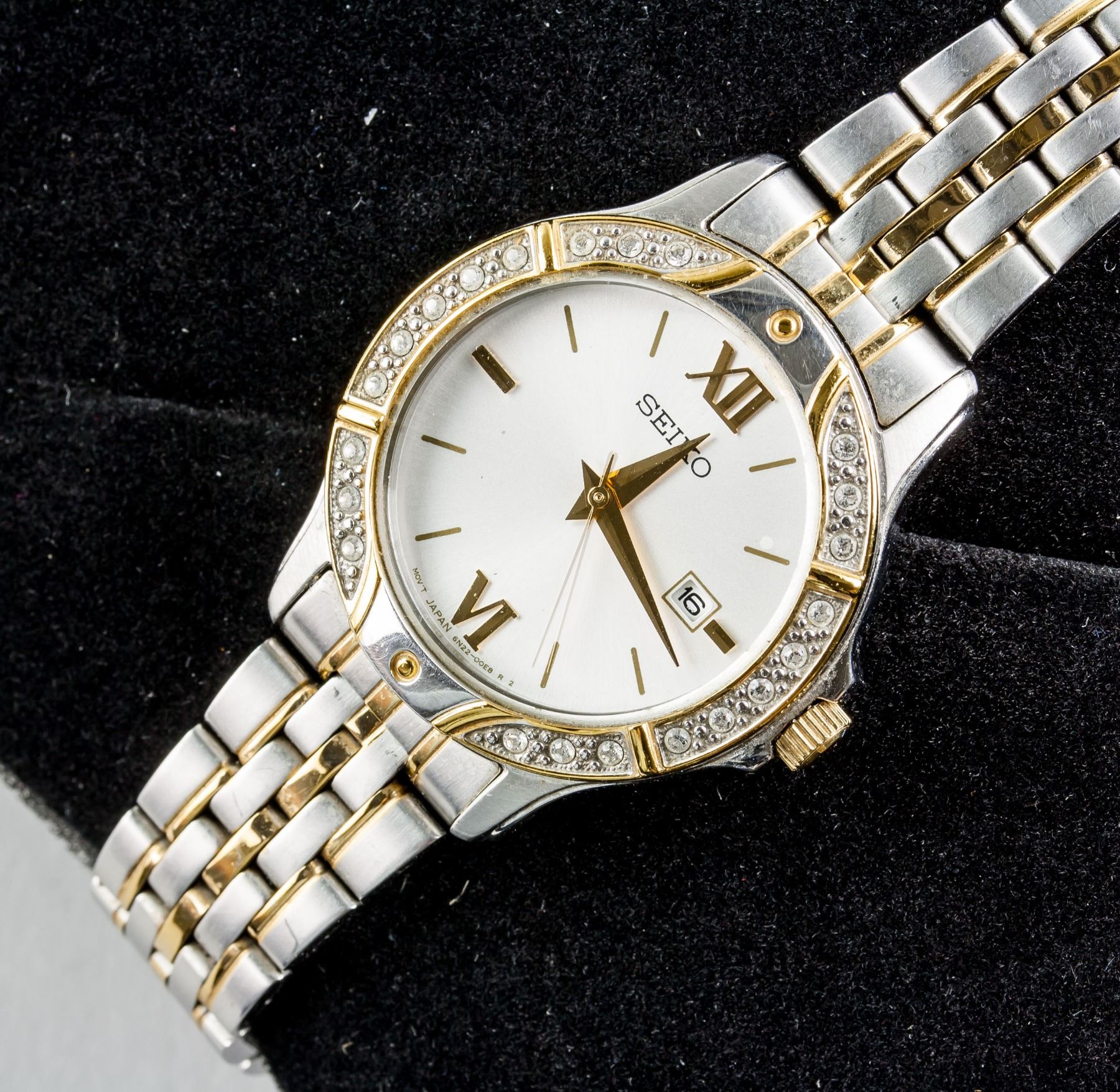 Seiko crystal watch; stainless steel; water resistant; Japan movement; 417069; chain band; Retail value $319