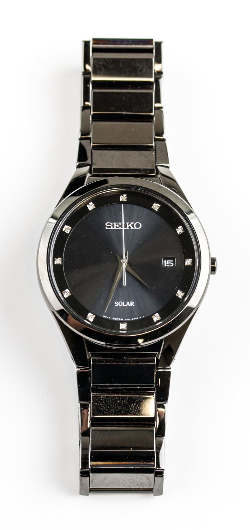 Seiko solar diamond watch, japans movement, stainless steel, water resistant, 5 bar. 561251. Retail value $450