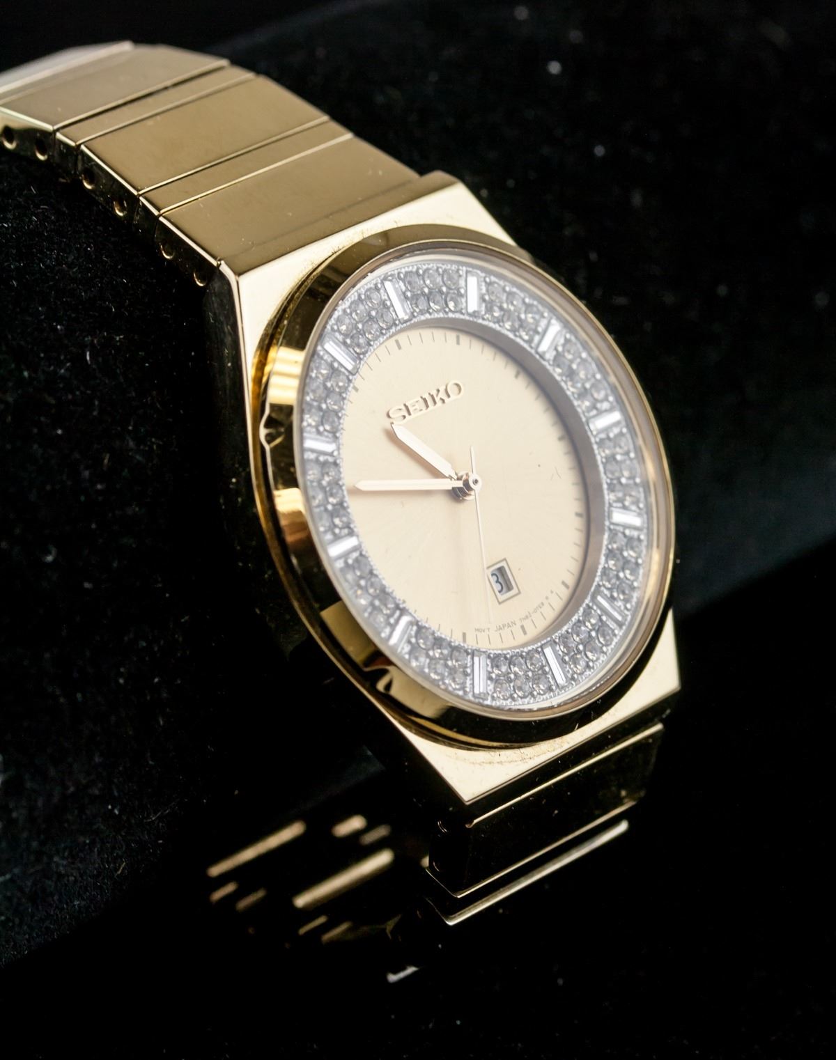 Seiko unisex diamond watch. Water resistant 10 bar, stainless steel, movement Japan. Working condition. Retail value $395.